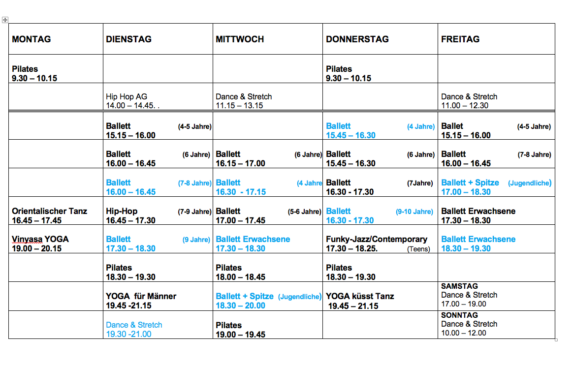 Ballett, Pilates, Kinderturnen, Gesundheitssport
